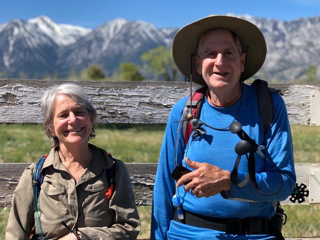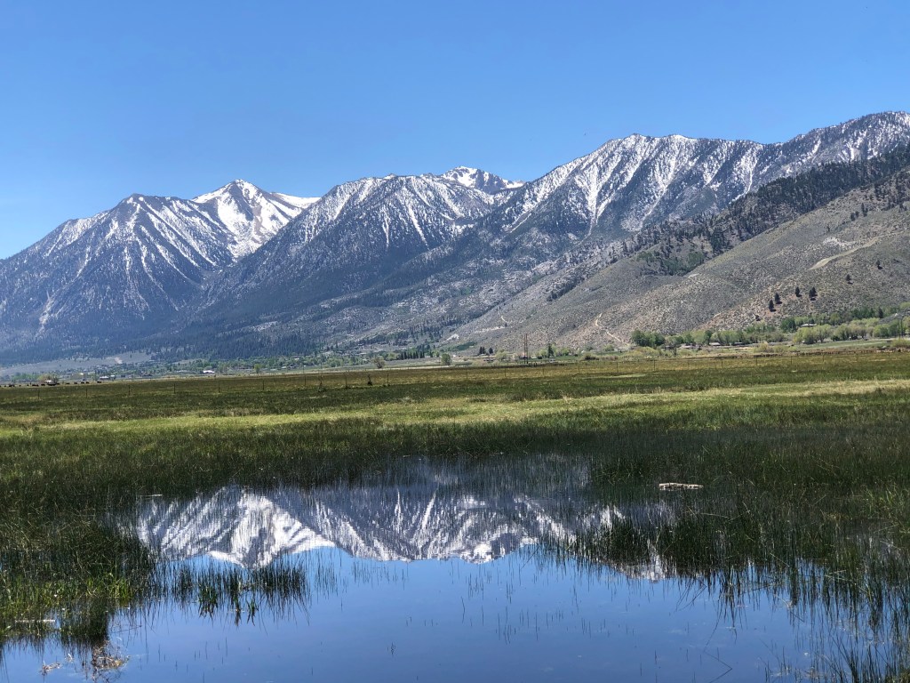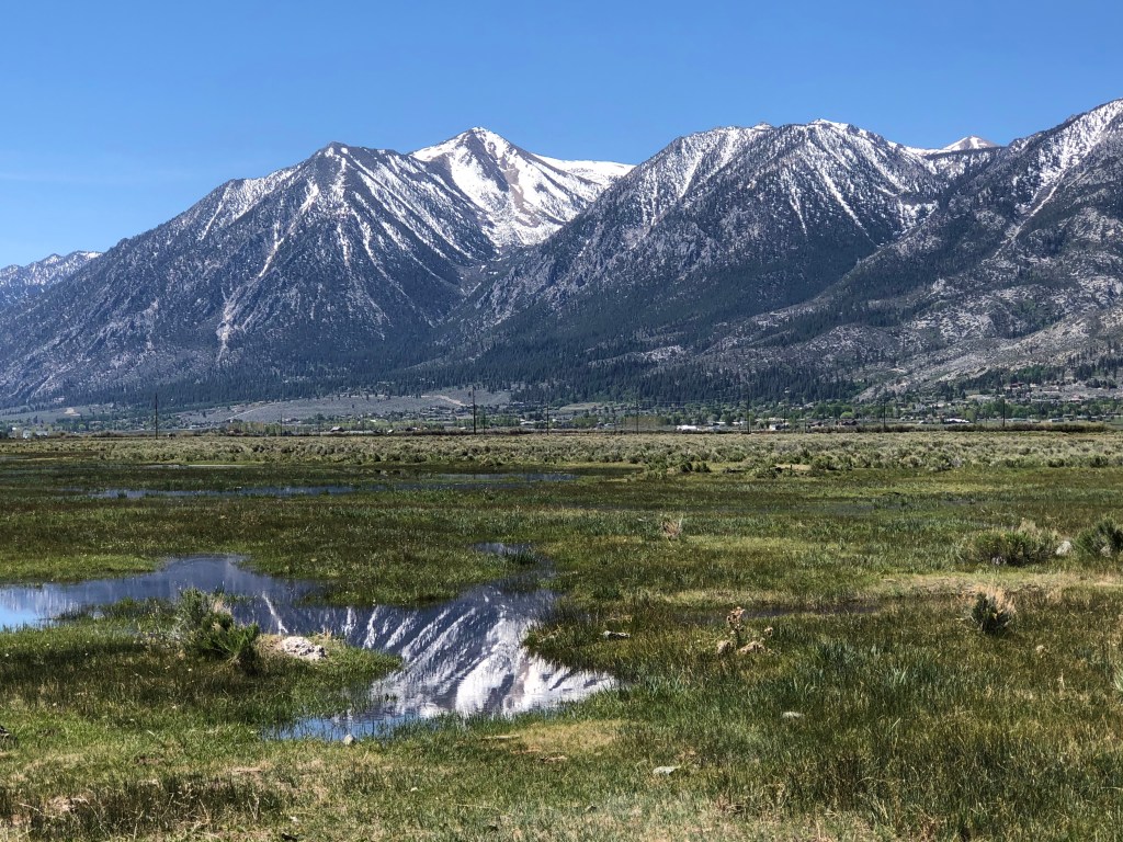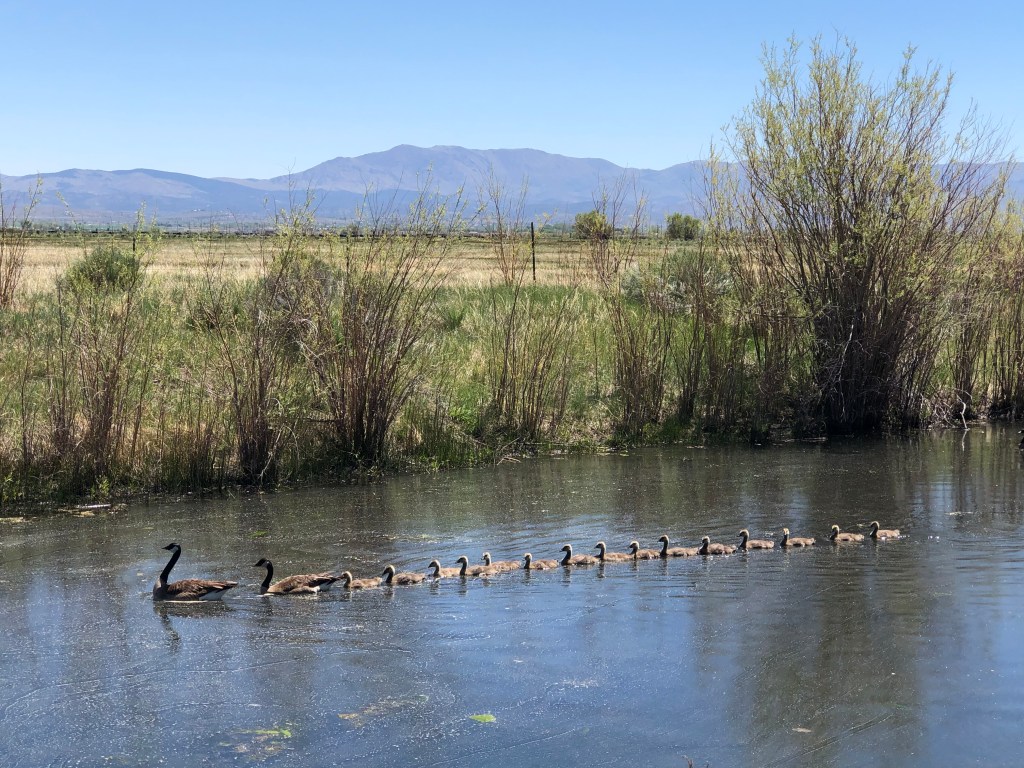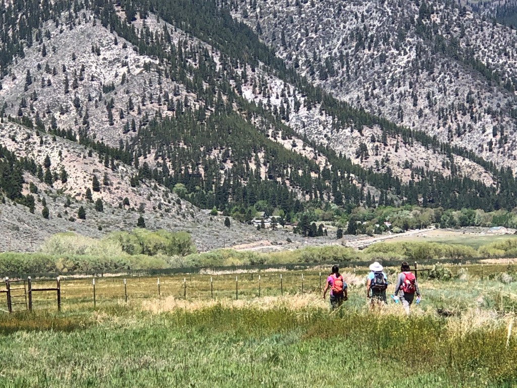 What a delight to meet up with 11 new companions on a 65 mile trek from Minden to Reno, NV on our Pine Cone Camino to Reno adventure. We began the morning’s walk under a beautiful blue sky and an incredible view looking west to the snow-capped mountains that rise over Lake Tahoe. We walked through lovely neighborhoods, alongside cow pastures and down the edge of the East Carson River to the Nature Conservancy’s River Fork Ranch near Genoa, approximately 5 miles from our starting point. While there we lounged while eating lunch and enjoyed a talk about the numerous restoration projects in the immediate flood plain.