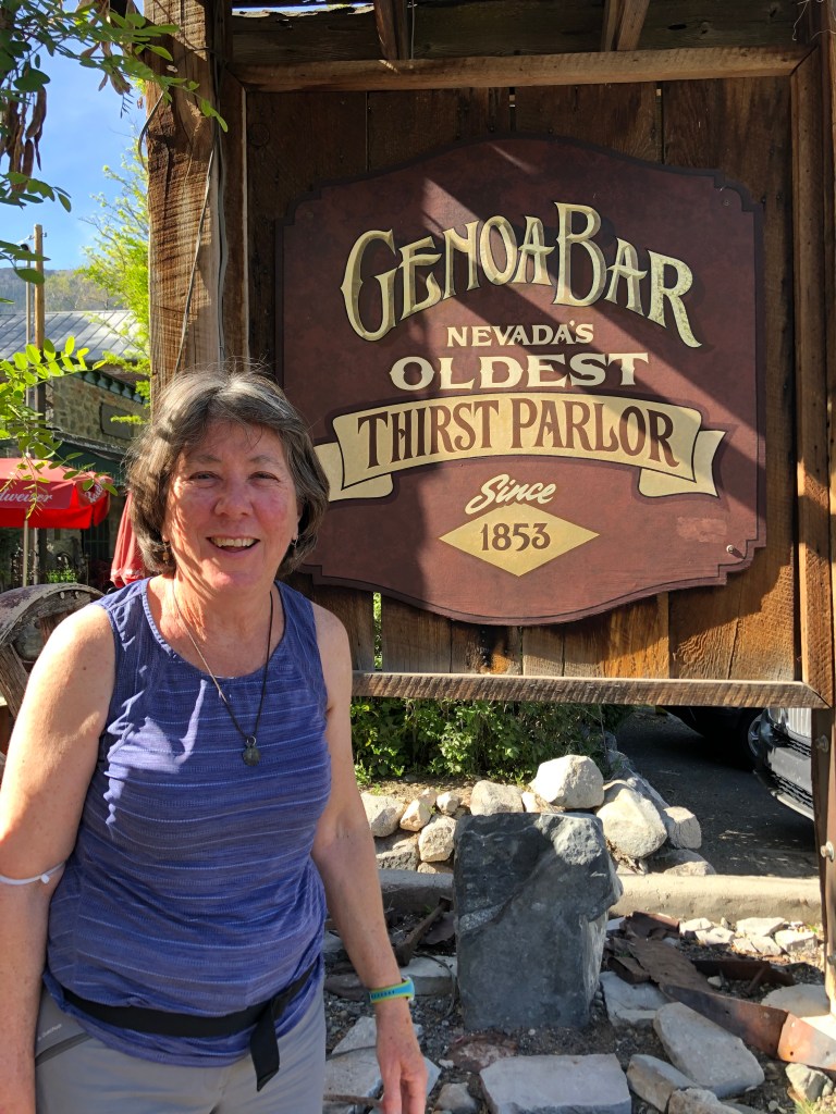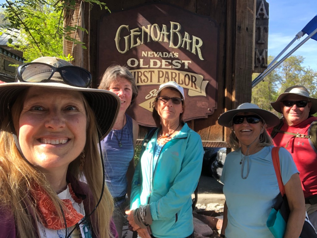 From there we continued another mile up the road to the delightful town of Genoa where we rested on the cool grass and appreciated a history talk about the Mormon Station State Historical Park. Then the Genoa Bar and Saloon (the oldest bar in Nevada) beckoned us to come rest our feet and savor a cold beer under the shade of the trees. From there most of the group continued on another three miles where vehicles were waiting to take everyone to a variety of accommodations.